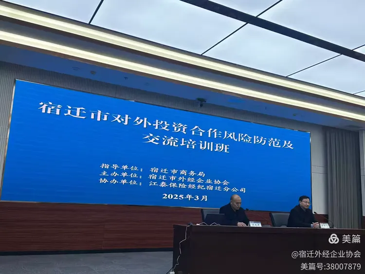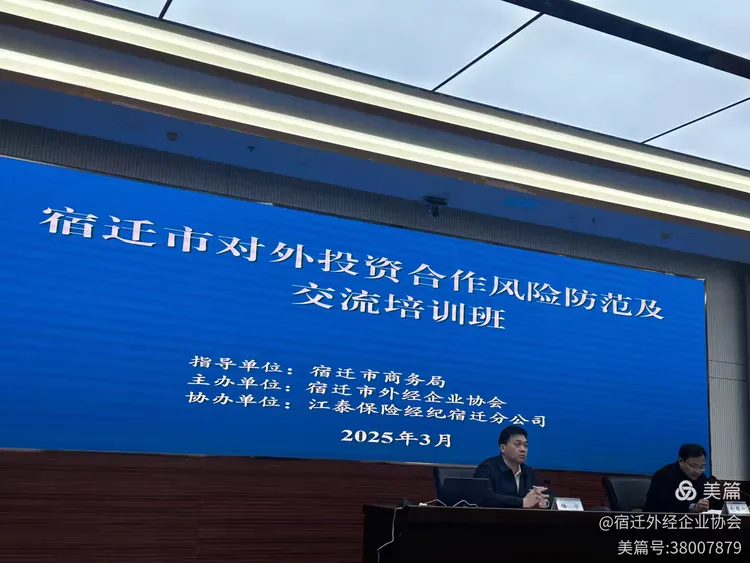 3月20日,由宿迁市外经企业协会主办,在宿迁市商务局指导、江泰保险经纪宿迁分公司协助下,第十一届中国企业“走出去”风险发布会宿迁分会场暨宿迁市对外投资合作风险防范及交流培训班顺利举行。活动采用线上线下结合的形式,助力宿迁“走出去”企业提升风险防范能力,实现高质量发展。