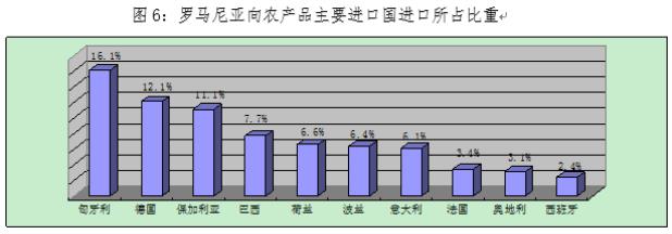 罗农产品主要的进口国为:匈牙利、德国、保加利亚、巴西和荷兰。