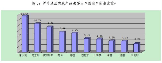 罗农产品主要的出口国为:意大利、匈牙利、保加利亚、荷兰和德国。
