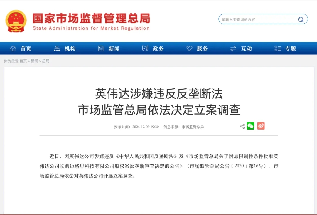 • 反制 | 中国对英伟达发起调查,涉及收购迈络思后市场垄断问题