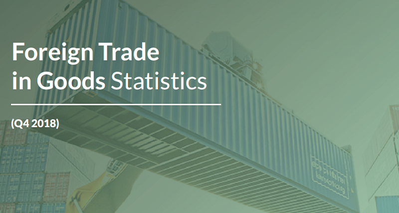 During the fourth quarter of 2018, Nigeria's total merchandise trade stood at N8,606.0billion. Compared to its value of N9,066.9billion recorded in the third quarter, total trade in Q4 2018 was lower by N460.96billion or 5.1%.